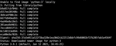 my-python latest e1adc20df7cb 5 seconds ago 903MB